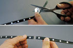 3素子間の本体裏側(両面テープは剥離紙の内側)で「はさみマーク」でカットでき、長さ調節可能。